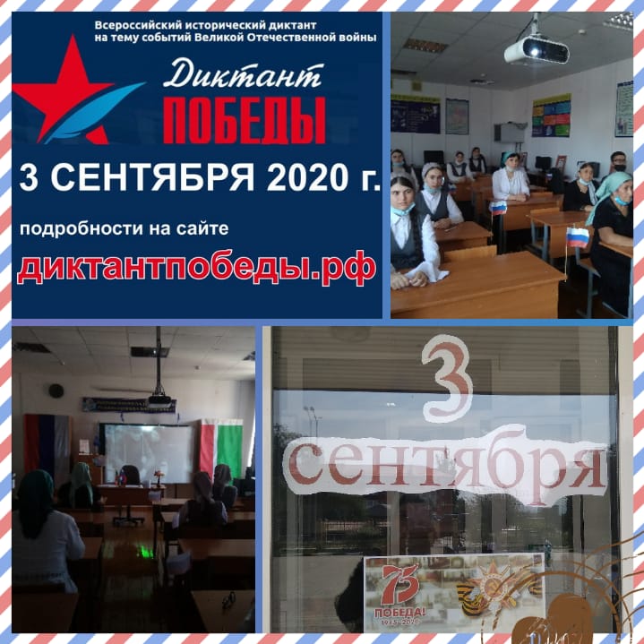 03.09.20203 сентября, в день 75-летия окончания Второй мировой войны состоялся Всероссийский исторический диктант на тему событий Великой Отечественной войны - «Диктант Победы».