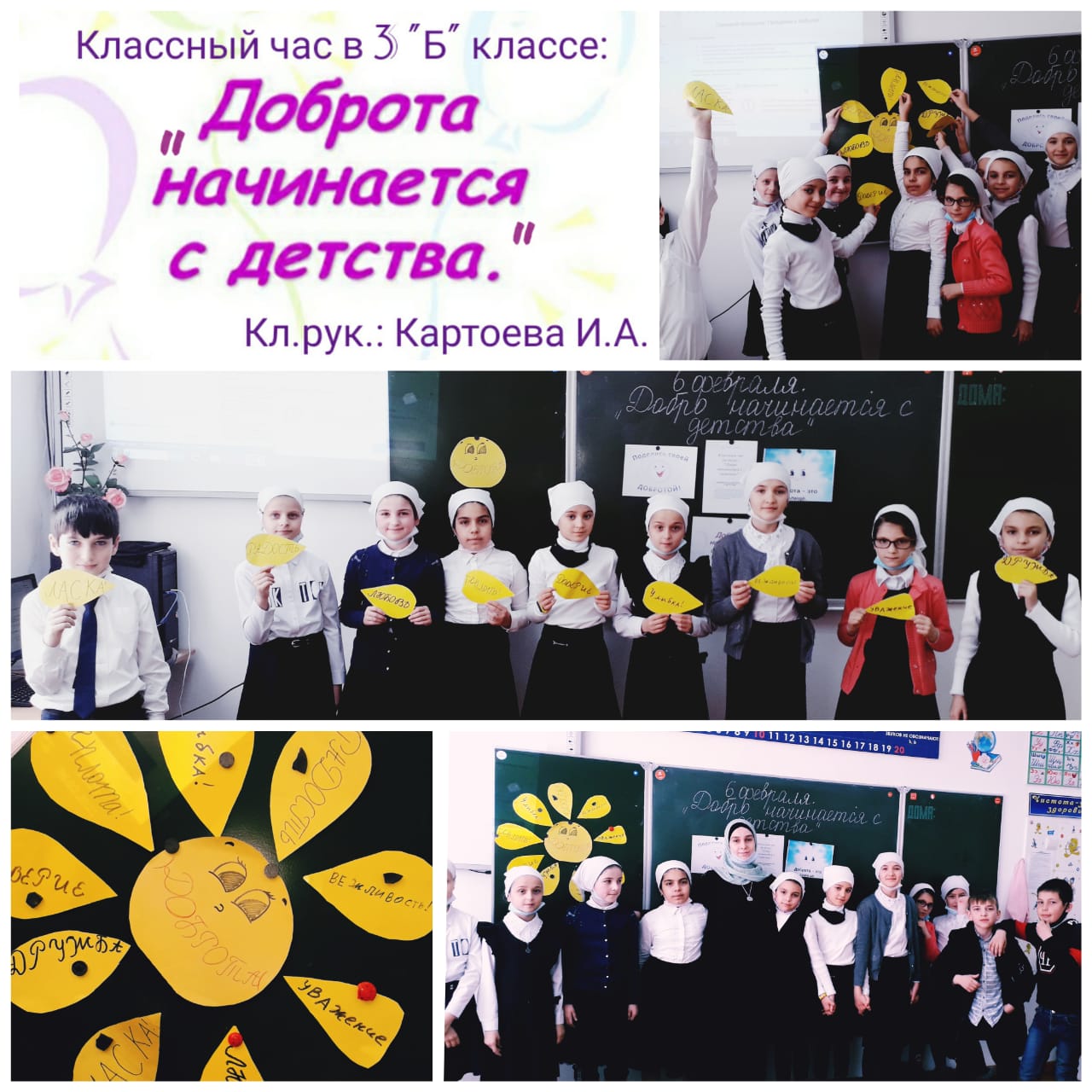 06.02.20216 февраля 2021 года в МБОУ «СОШ №2 с.п. Горагорское» классным руководителем 3 «Б» класса Картоевой И.А. был проведен классный час на тему: «Доброта начинается с детства».