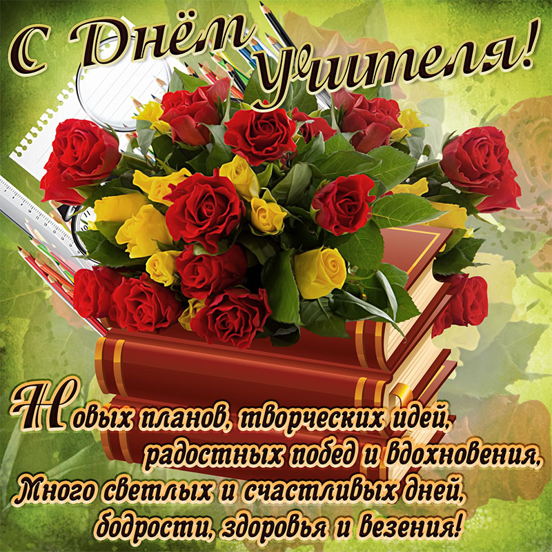 05.09.2022Вас поздравляем с Днем учителя сердечно! Желаем счастья, много радости, тепла, здоровья, сил вам и терпения, конечно, чтоб удавались все задачи и дела! Мы вам желаем только ярких ощущений, насыщенных и красочных деньков, побольше замечательных мгновений, и лишь прилежных вам учеников! За окошком шелестит Осень золотая. В октябре учителей Всех мы поздравляем. Пожелаем Вам тепла В классе и порядка, Уважения всегда, Мира и достатка.