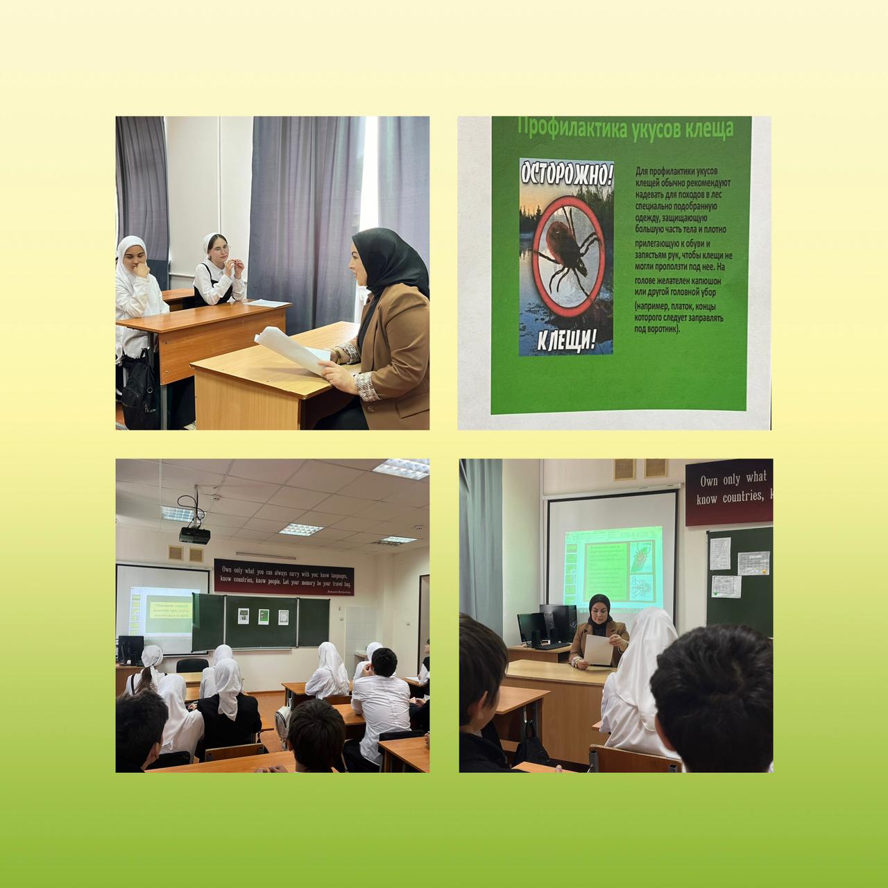 04.05.2024Классным руководителем 8 "А" класса Тавлахановой П.А. проведен профилактический классный час, на тему: «Оказание первой помощи при укусах насекомых и змей».Классный руководитель рассказала ребятам о том, как нужно вести себя в местах где водятся клещи, змеи, комары, пчелы и т.д. Как вести себя в том случае, если клещ попал на участки тела, укусила змея или ужалила пчела. Был проведен инструктаж по оказанию первой помощи. Классный час проведен с показом презентаций и видео по данной теме.