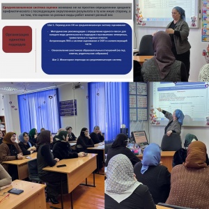 Выступала учитель химии и биологии по совместительству региональный методист Давлакова А.М. Айшат Мовладовна ознакомила педагогов с новой системой оценивания, которую предполагается ввести в виде эксперимента в середине 3 четверти этого учебного года.