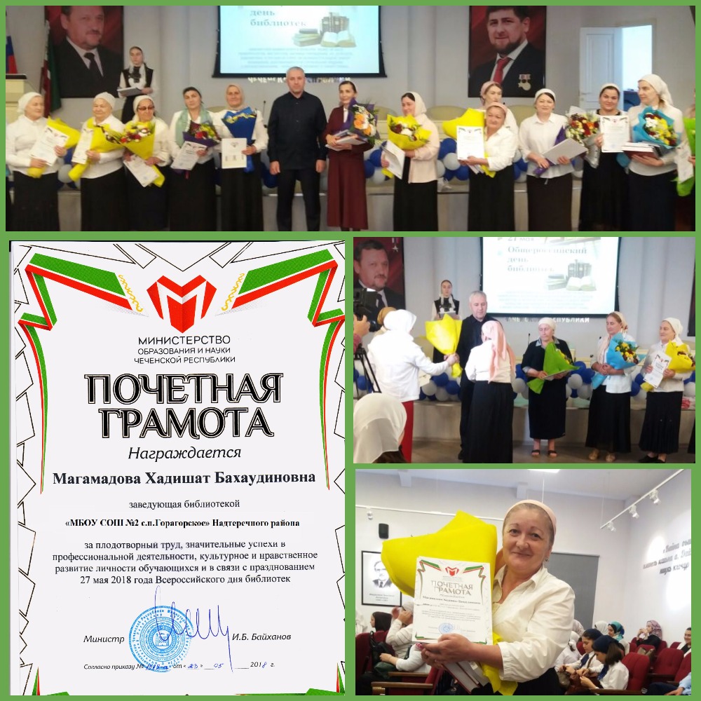 25.05.2018г. наша коллега Магамадова Хадишат Бахаудиновна награждена "Почетной грамотой" за плодотворный труд, значительные успехи в профессиональной деятельности.